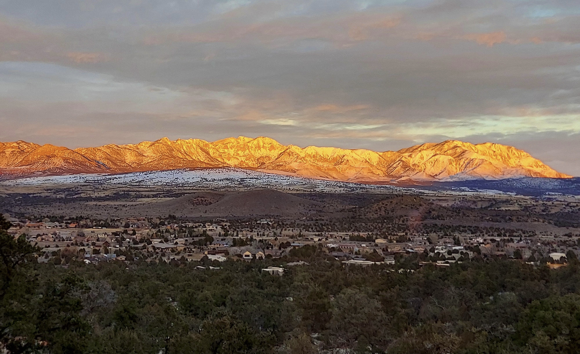 The mountain lights up in the light of the setting sun. The photo below courtesty of neighbors from a few hundred feet north of the lot and across the street.