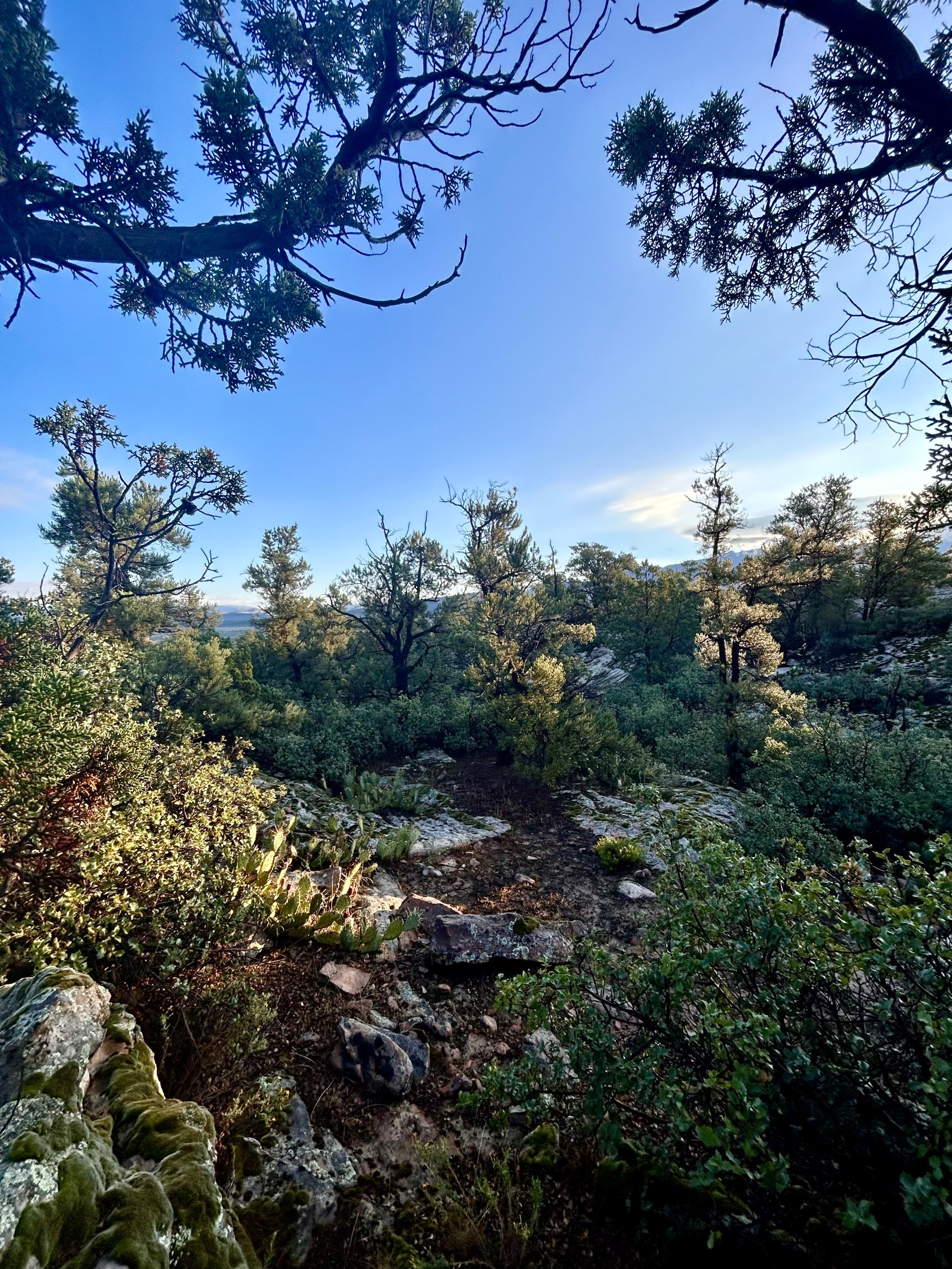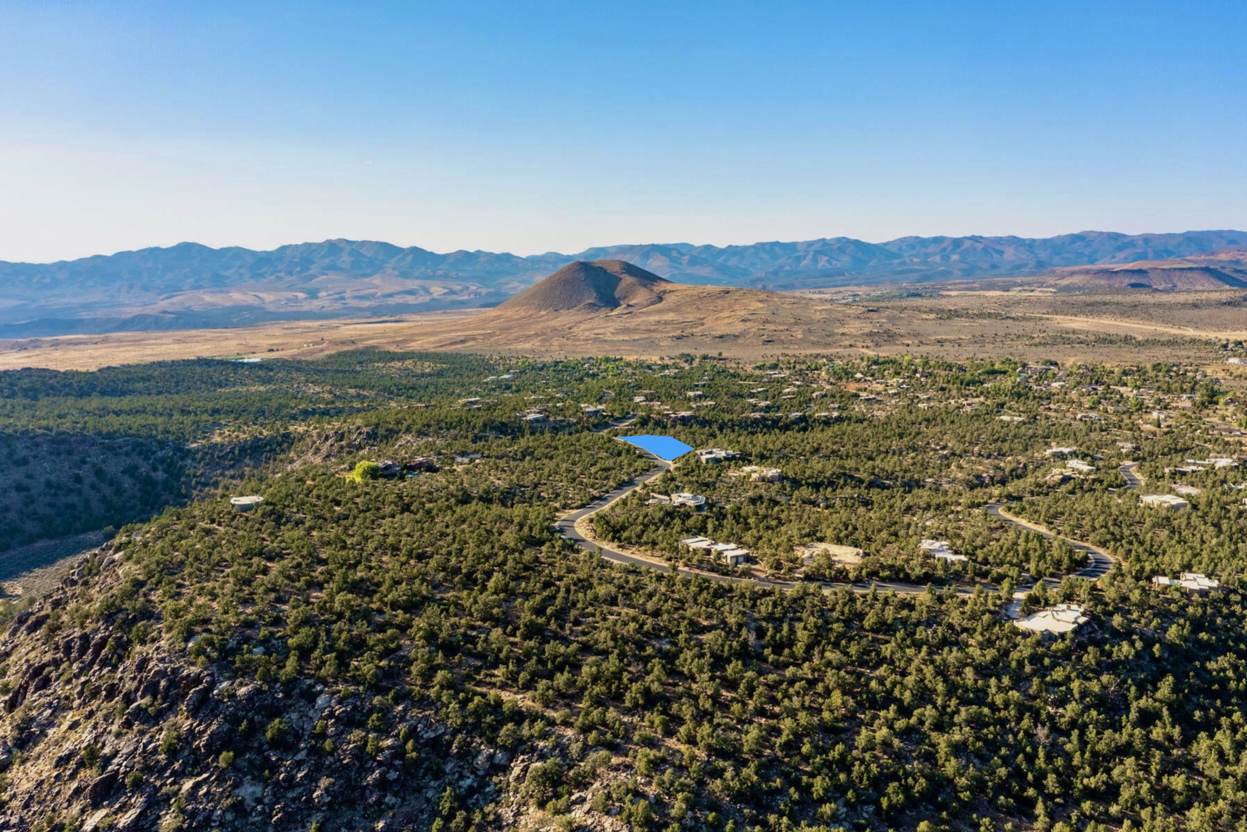 This morning photo, early September 2023, shows Lot 60 from the south. The new Lot 60 is just over 1.5 acres, the only property of its size at the top of Pinion Hills. Approximate address is 316 N. Pinion Hills Drive if you would like to see the area. Water and sewer impact fees have been paid (about $8,000), and I have plans for a 3300 sq ft 2 story walk-out previously approved by the architectural committee, though you are welcome to design and build something else with a builder of your choosing.